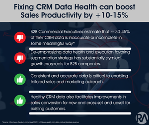 Fixing our CRM data hygiene should be a top leadership priority to drive sales productivity and revenue growth. However, for many B2B environments particularly in Manufacturing and Wholesale, there’s often a big disconnect between strategy and execution. Companies spend a disproportionate time and investment on market research studies to understand their buyer archetypes and personas, only to stop at great Power Points, executive updates and cross-functional pontifications.