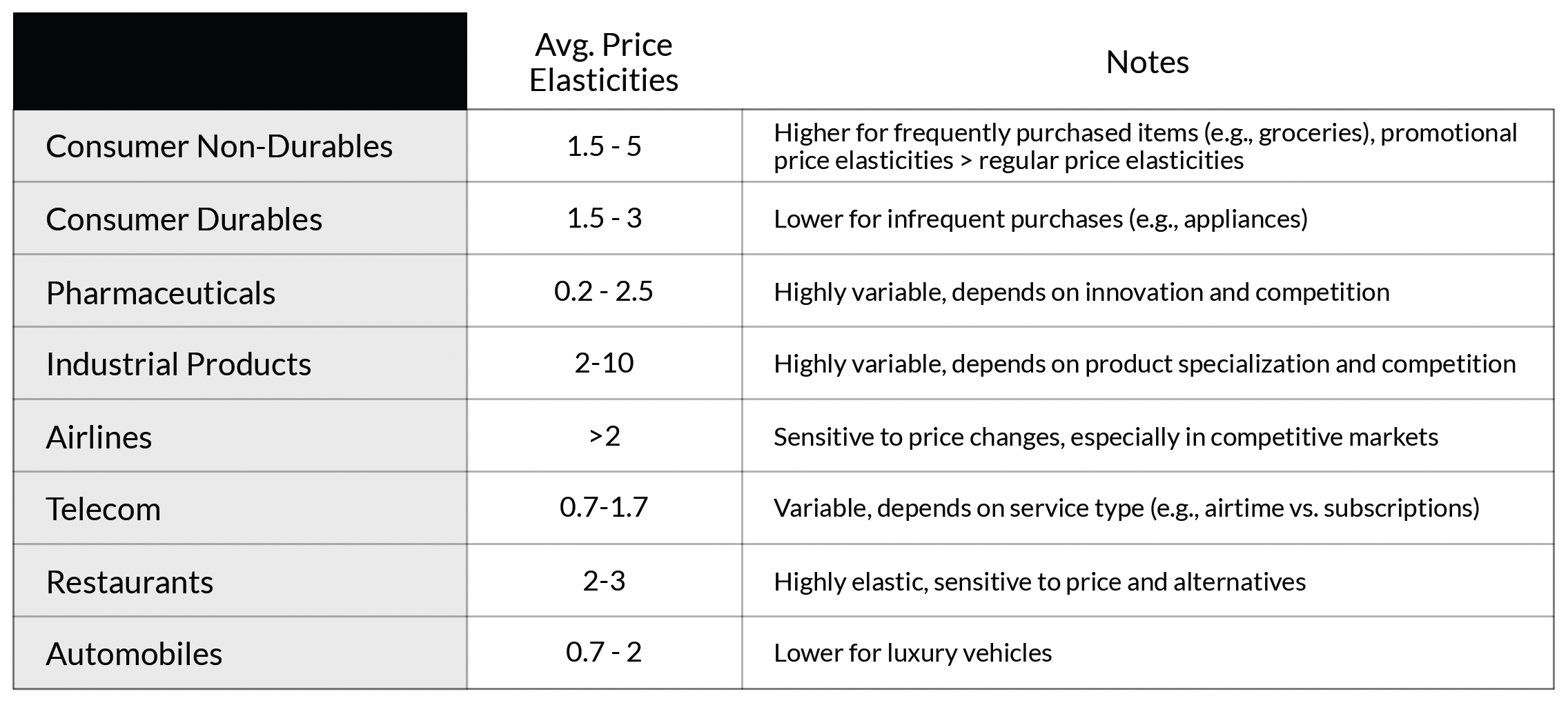 Typical price elasticities by industry.